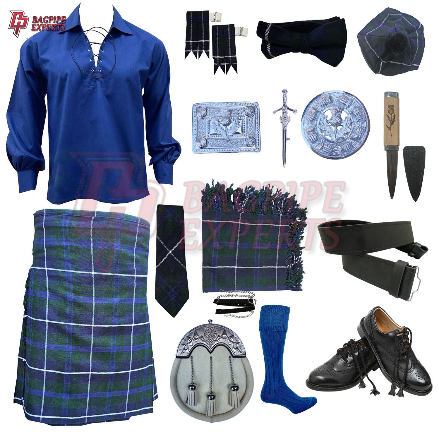 Blue Douglas Tartan Complete Kilt Outfit – Custom Highland Dress Set with Color Options