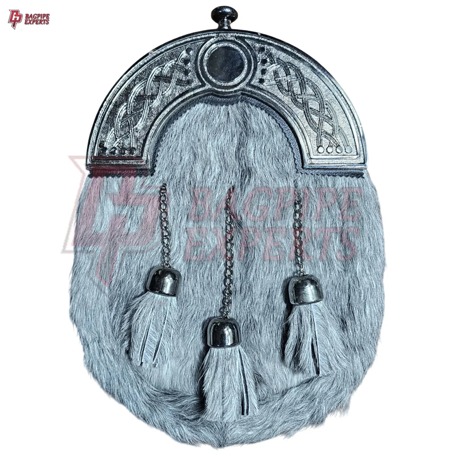 Premium Grey Fur Dress Sporran – 3 Tassels & Polished Chrome Cantle for Highland Wear